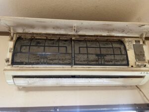 エアコン内部は全体的に汚れており